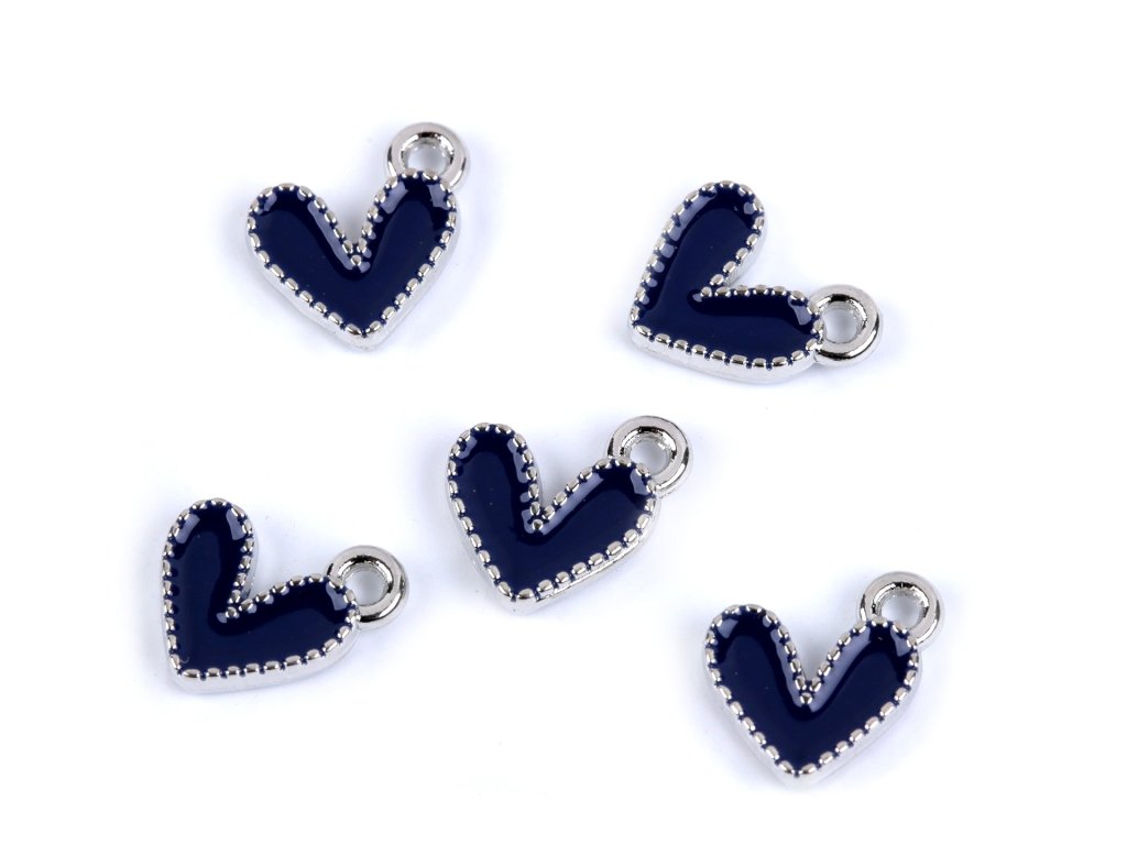 Přívěsek mini srdce 10x10 mm, 7 - modrá tmavá, platina